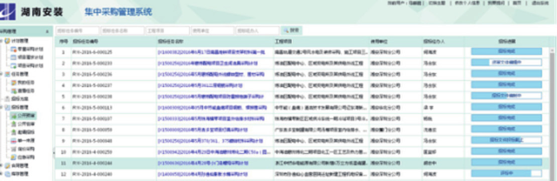全部分支机构、全部业务部门上线,包括物资、设备、劳务分包、工程分包,六种招标方式全面应用。