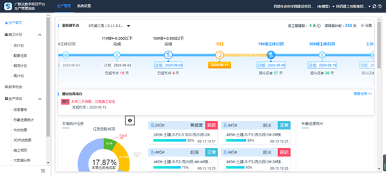 为解决现场协同,避免因信息沟通不及时造成不必要的损失,项目引进生产管理平台,实现各体系部门协同工作,数据信息共享和传递,同时利用信息化系统自身特性实现基于模型数据和现场过程数据集成应用,高效解决现场实际管理难题。