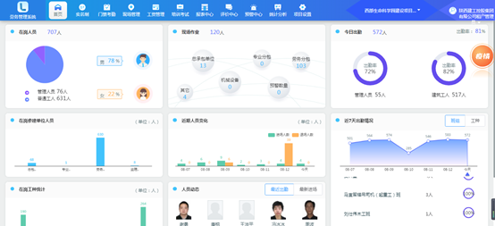 劳务实名制系统,构建工人数据库,有效评价和改善用工关系,保障用工安全在工人进场前录入身份和人脸信息,使用中工人通过实名制通道刷脸入场,最终统计工人的出勤、工日,保障了劳务人员和用工单位双方的权益。