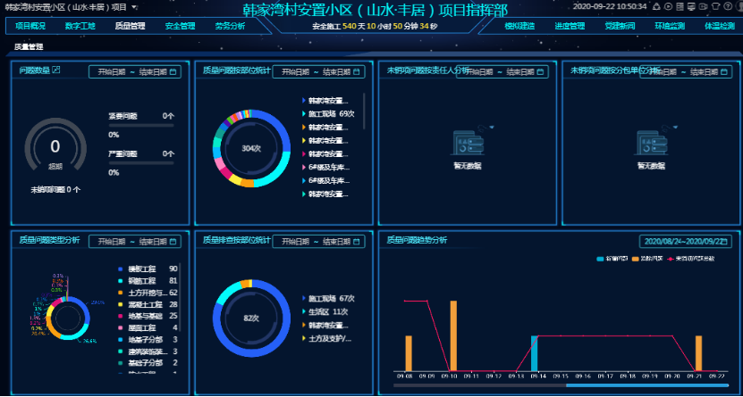 韩家湾项目现阶段通过应用BIM技术、物联网、移动互联网等技术,辅助项目管理人员在总承包项目建设全过程中对劳务,质量、安全、生产等方面管理目标的执行、监控,借助大量数据的采集、汇总、整理和分析,提取用于