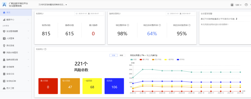 采用智慧平台管理系统使管理人员按照标准化的作业流程进行项目管理,及时进行信息传递和共享,提高掌握现场情况的效率和准确性。同时通过宏观监控,优化施工场地布局,合理规划,综合调配人力物力。