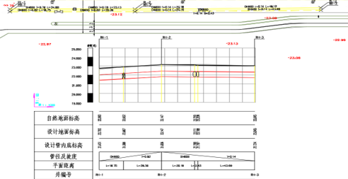 06 纵剖面图选取界面上的一段管道,根据走势可生成对应的纵剖面图,并且可以在剖面图上直接做调整,可将调整好的剖面图返回平面图中,在剖面图中解决了管道打架等碰撞现象。可以对纵断面的绘制做详细的设置,包括行间距,字高字宽及所要列出的表头项。 |