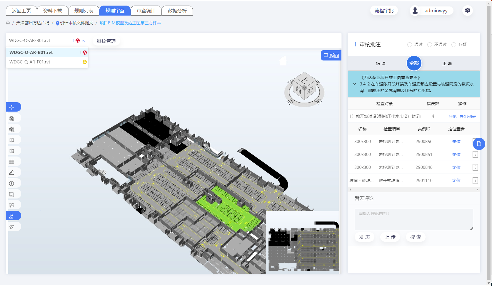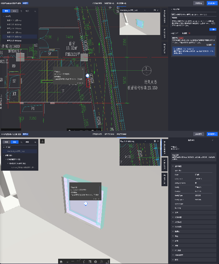 二三维人工辅助审查图模轻量化浏览 测量、旋转、剖切、小地图定位、轴网定位、漫游 多专业集成参照、模型批注、问题关联模型定位、变更对比 BIM正向设计图模构件级联动和BIM逆向设计图模空间级联动 |