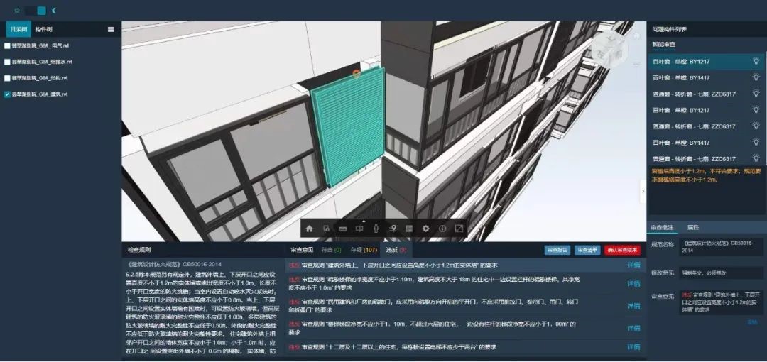 设计质量智能审查•房建类全专业1000多条国标规范条文的智能审查 •自定义规则编辑器,各专业人员可自定义修改条文规则 •智能审查意见同时匹配至图纸和模型,审查人员可以清晰查看图模问题 |