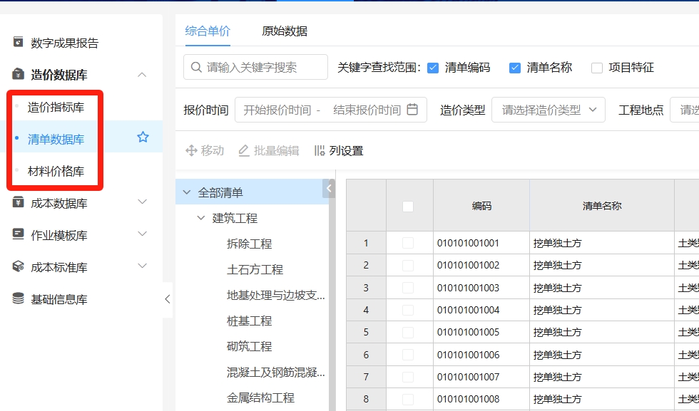 —————————对于土建总包、精装、景观、幕墙等全专业工程均采用企业清单、港式清单模式计价的场景,满足从清单编制、投标报价、报价分析、指标统计、清标分析一体化应用,全面提升造价作业质量及效率。 |