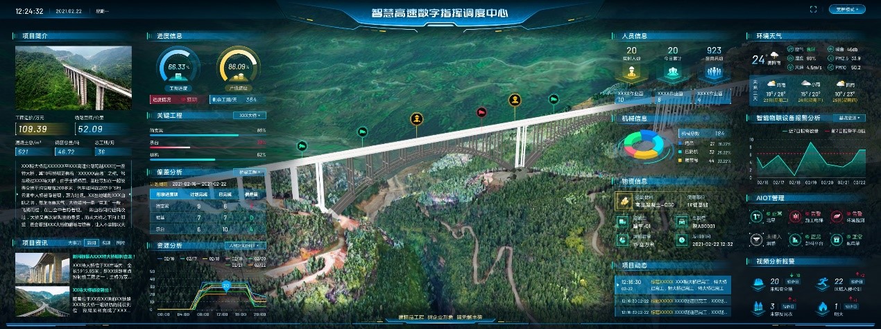 支持人机料、质量、安全、进度等各类业务数据全场景查询,打造施工现场数字孪生