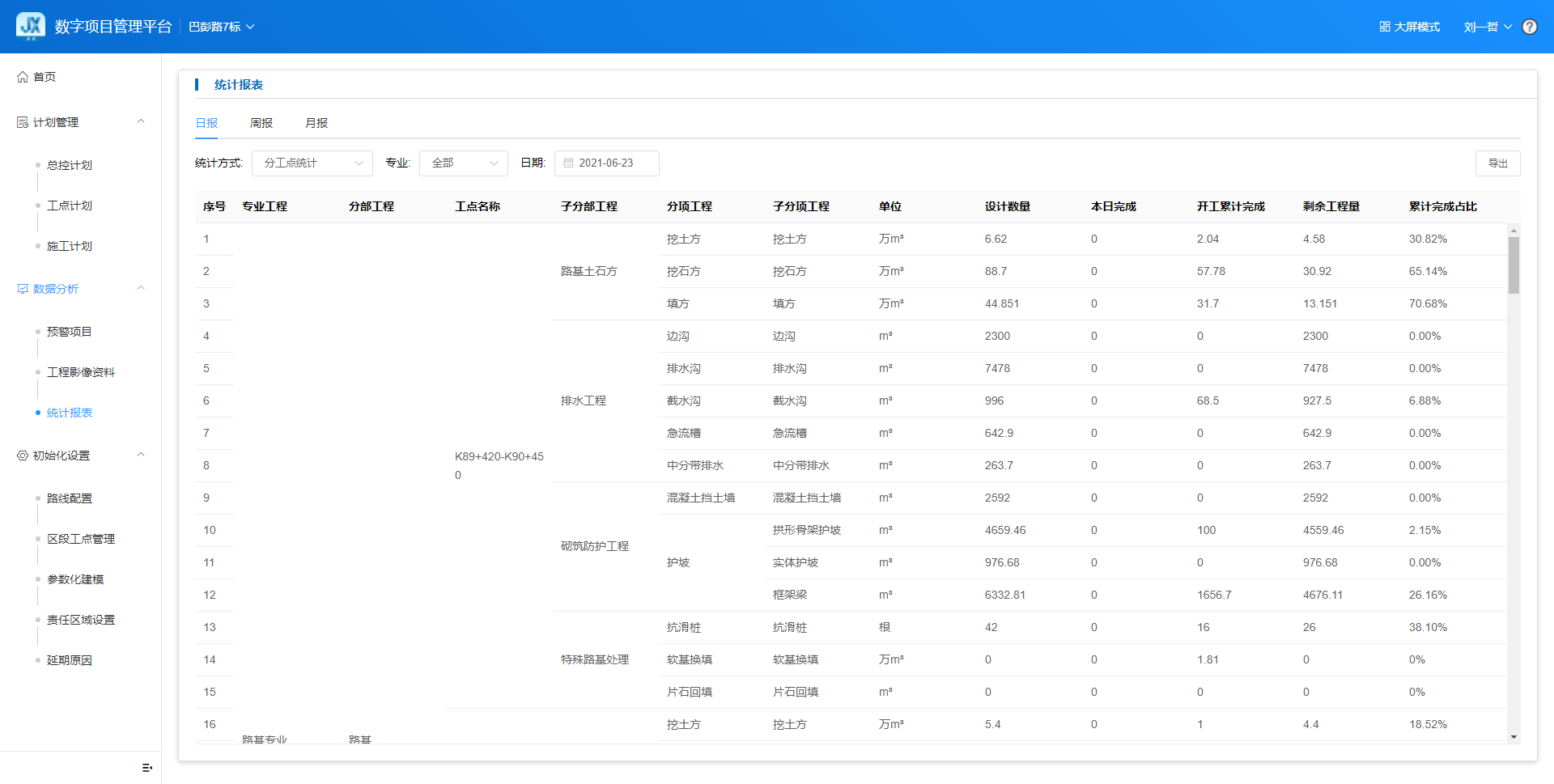 手机APP端可直接查看汇总的进度统计日报数据,提升管理效率