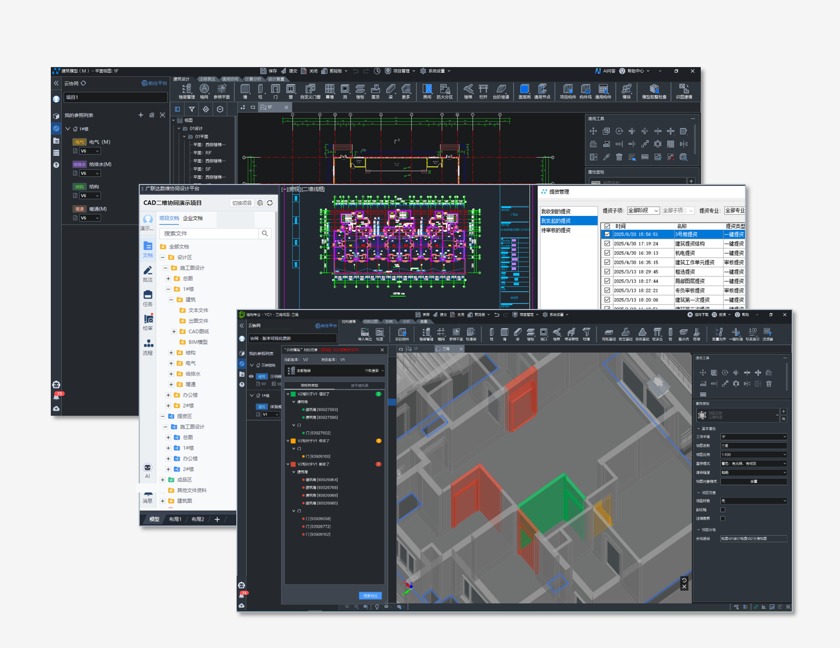 同时支持国产化设计软件(数维)、中望CAD及Autodesk Revit、Autodesk CAD等,一个平台多个端,可扩展性极强。 兼容二维项目与三维项目,企业无平台对接或平台迁移的后顾之忧。