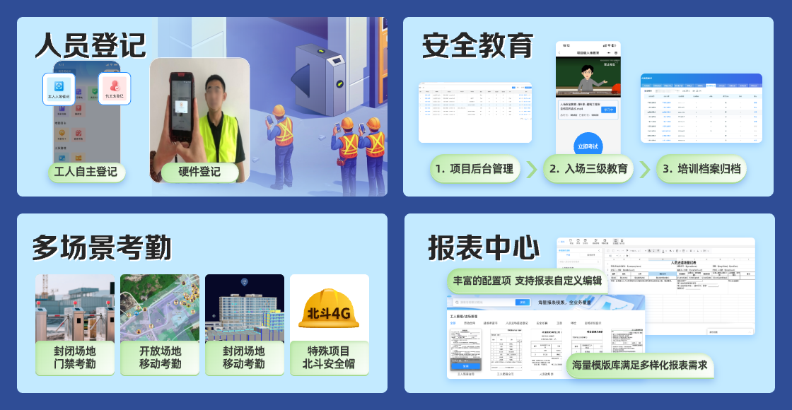 移动端自助登记 破解工人批量进场登记与风险防控痛点,支持小程序远程预登记 + 合规审核(三级教育 + 实名无风险),提效降隐患,助企业规范用工 电子签 数字化管理工人进、退场资料签署,项目便捷发起、工人小程序远程签,保本人签署合法,助项企管控,解代签、盖章慢、归档难问题 |