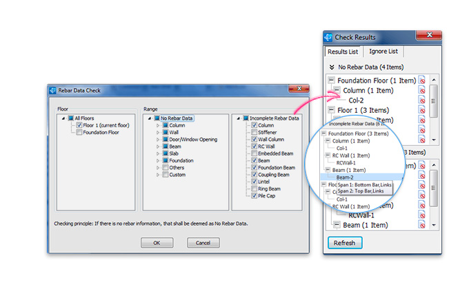 轻松、快捷检查配筋情况,漏配筋、未配筋一目了然,自动定位修改。
