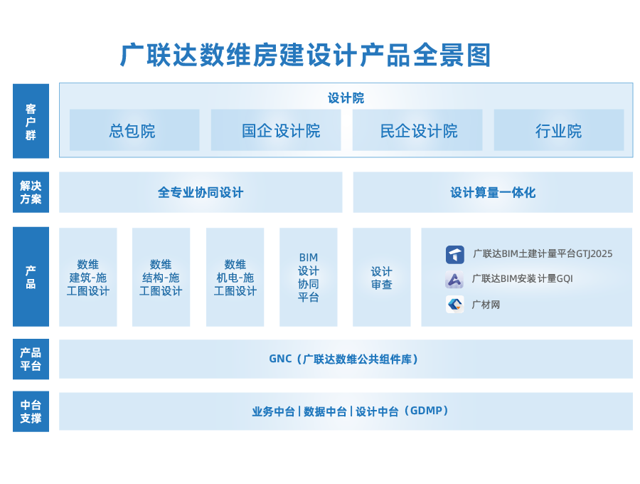 6686体育官网首页数维房建全专业协同设计解决方案, 包含建筑设计、结构设计和维机电设计3个工具端产品以及协同设计平台、设计资源2个支撑平台,以设计数据标准为核心,采用“云+端”的产品架构为用户建立全专业协同设计环境,结合三维和二维工具优势,实现高效的构件级云端全专业协同设计,减少设计错误,提