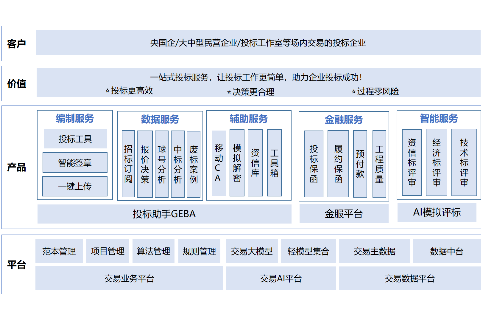 从公共资源交易三平台,BIM招投标,AI智能解决方案,到全省一张网,打造行业数字化智能体。