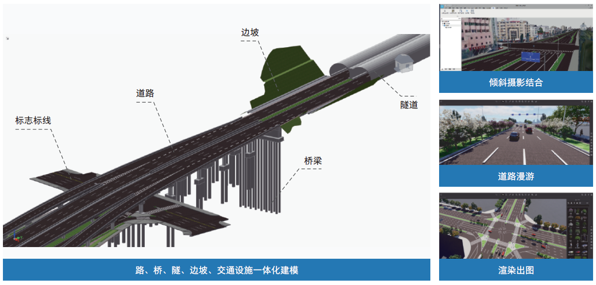 6686体育官网首页数维道路方案设计,通过BIM数据库直接驱动设计成果的生成。不改变既有的设计习惯,通过简单高效的方式完成设计建模。一个软件就可以实现倾斜摄影、联机地图、地形地质、道路、桥梁、隧道、涵洞、交通设施、景观、管线以及第三方软件所创建的地上地下建模与集成。同时软件内置渲染器,一键完成高画质高逼真渲染,可进行漫游视频制作导出,一款软件可完成多款软件工作,在提高效率的同时,避免因数据传递导致模型丢失。