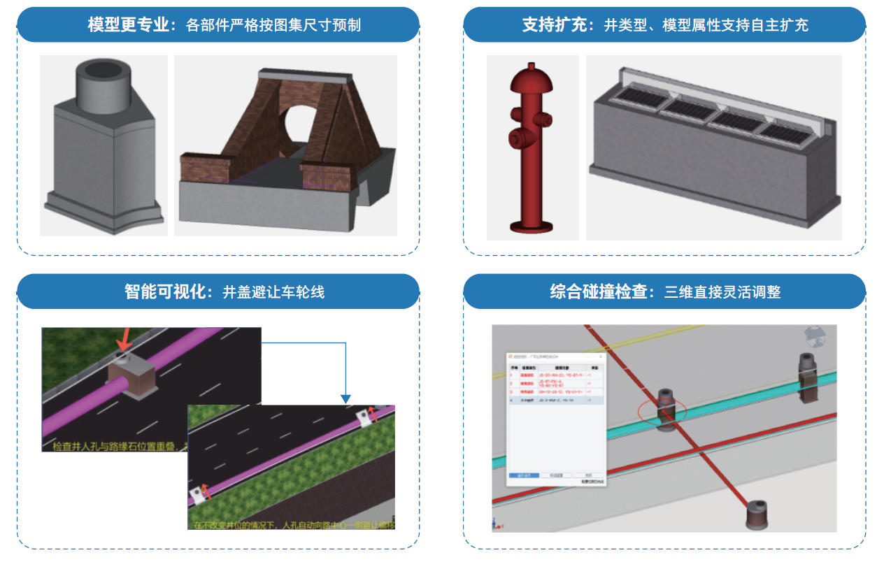 ⑥内置丰富构件和方案(合杆、护栏、交通灯、监控设备等),用户可自主追加