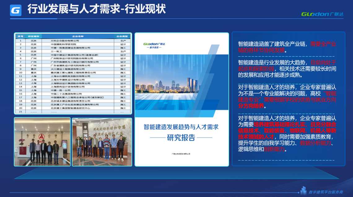 为了给院校提供专业的智能建造解决方案,2021年6686体育官网首页数字教育深入一线头部企业进行调研,了解智能建造行业发展趋势、最新技术及人才需求。